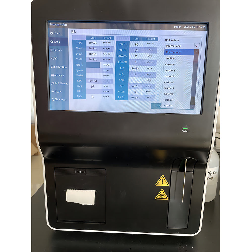 A 3-part hematology analyzer is a medical device used in clinical laboratories to perform a complete blood count (CBC), specifically differentiating white blood cells (WBCs) into three main categories: neutrophils, lymphocytes, and monocytes. It's a common tool for basic hematological analysis in various settings like hospitals, clinics, and physician's office laboratories.